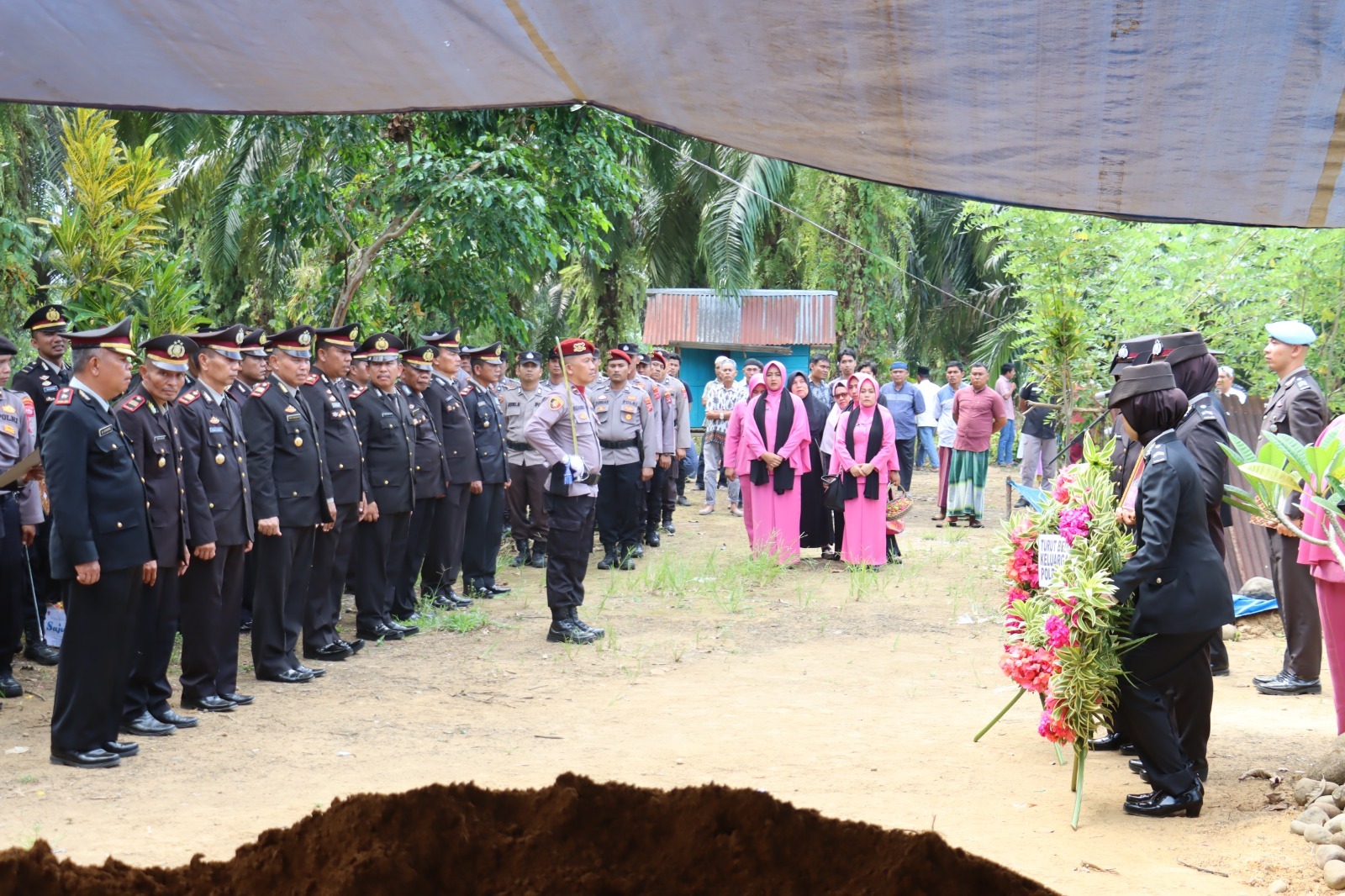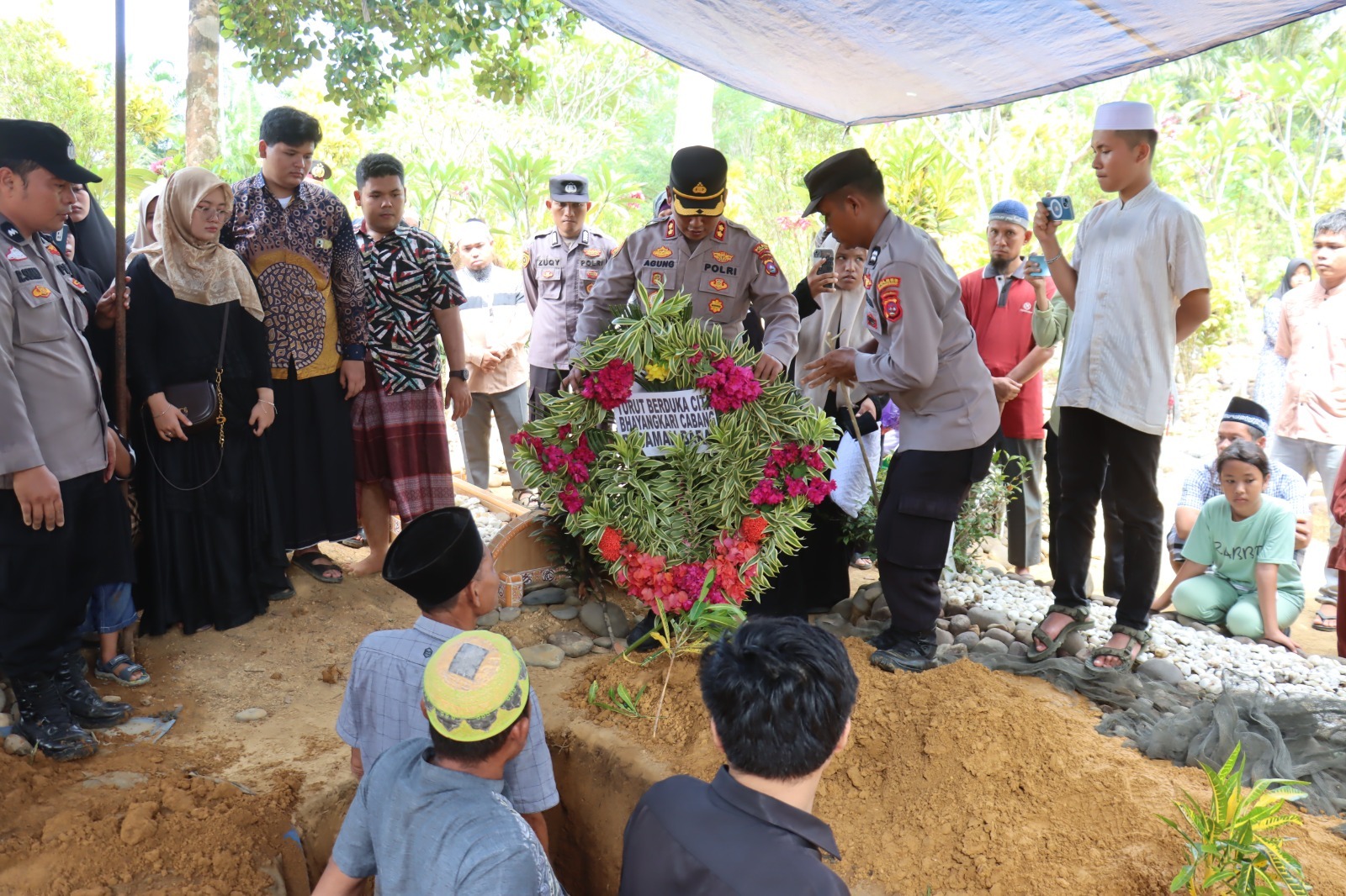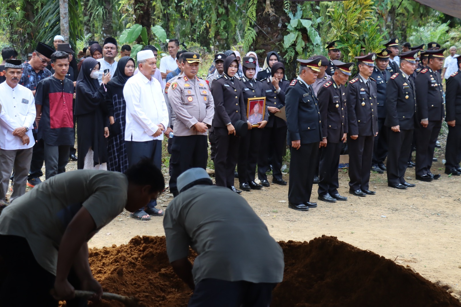 Dalam prosesi upacara pemakaman tersebut penimbunan liang lahat secara simbolis juga dilakukan oleh Kapolres AKBP Agung Tribawanto dan Bupati Pasaman Barat H. Hamsuardi.