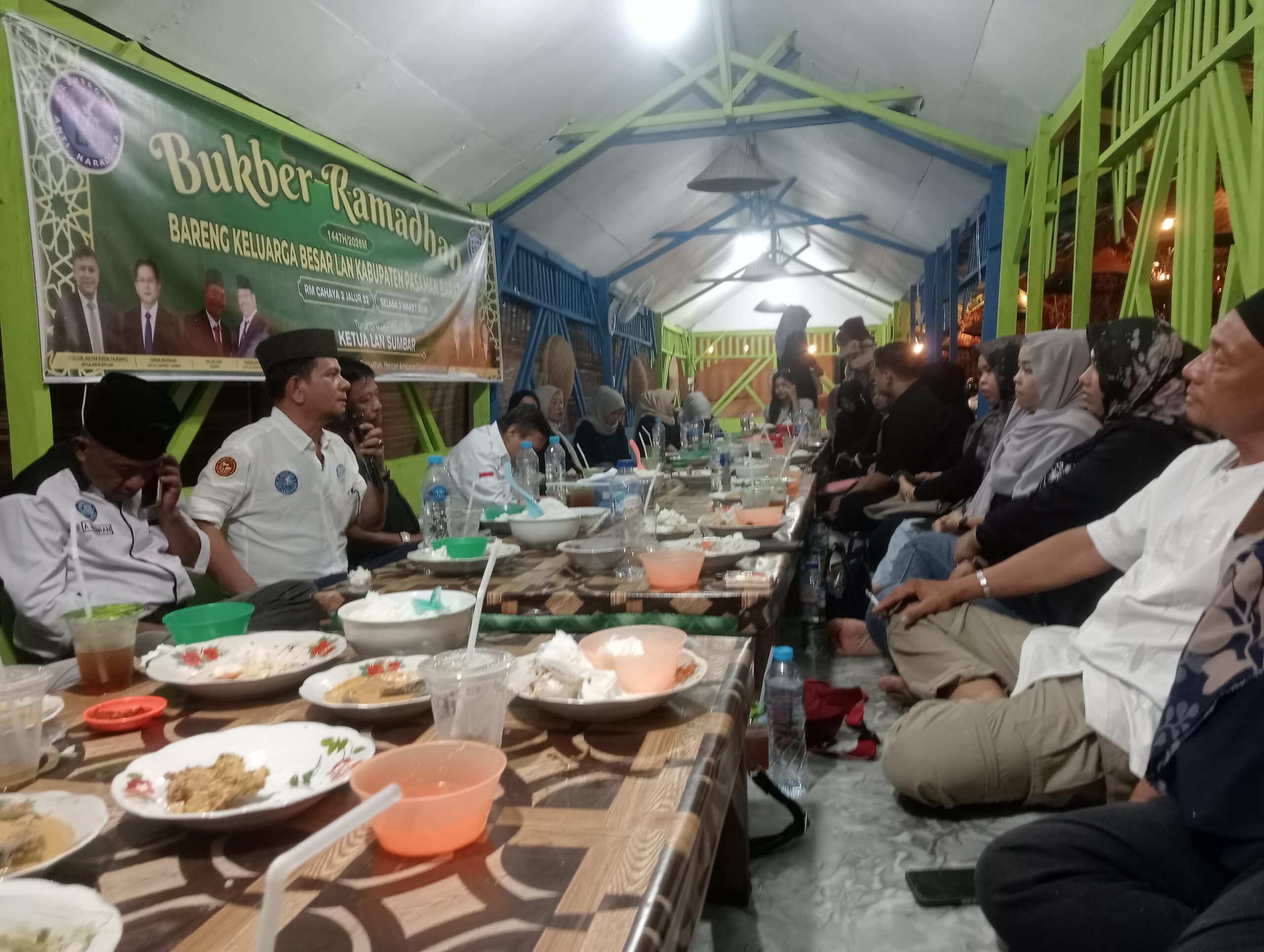 PASAMAN BARAT SUMBAR iNews77.id Acara Berbuka Puasa Bersama di Bulan Suci Ramadhan adalah hal yang penuh berkah ini.terlihat keakraban dan kebersamaan dalam kegiatan buka puasa bersama (Bukber) Ramadhan 1447 H/2026 M. yang digelar oleh keluarga besar Lembaga Anti Narkotika (LAN) Kabupaten Pasaman Barat, acara yang berlangsung RM Cahaya 2 di jalur 32 Simpang Empat Pasaman Barat pada Selasa (3/3/2026)