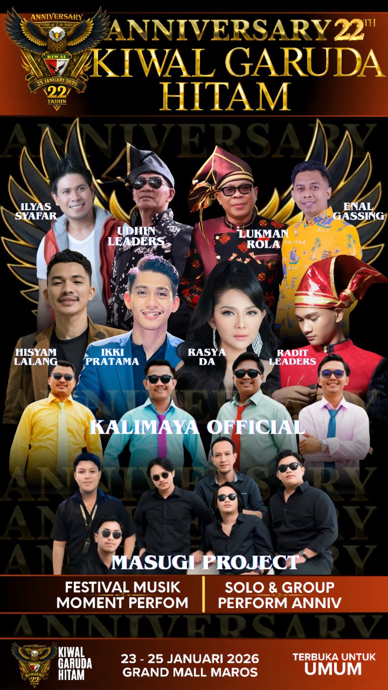 MAROS, iNews77.id – Organisasi Kemasyarakatan KIWAL Garuda Hitam akan memperingati Hari Ulang Tahun (HUT) ke-22 dengan menggelar Festival Musik dan Seni selama tiga hari, mulai Hari ini, Jumat hingga Minggu, 23–25 Januari 2026. Kegiatan tersebut akan dipusatkan di Grand Mall Maros dan terbuka untuk umum.