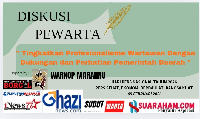 MAROS, iNews77.id– Momentum Hari Pers Nasional (HPN) yang jatuh pada tanggal 9 Februari 2026 disambut dengan antusiasme tinggi oleh insan pers di Kabupaten Maros. Berbeda dengan seremoni formal di tingkat provinsi, para pewarta di Maros memilih merayakan hari bersejarah ini dengan menggelar Diskusi Pewarta di Warkop Sija Marannu, Jalan Gladiol, Maros, Senin (9/2).