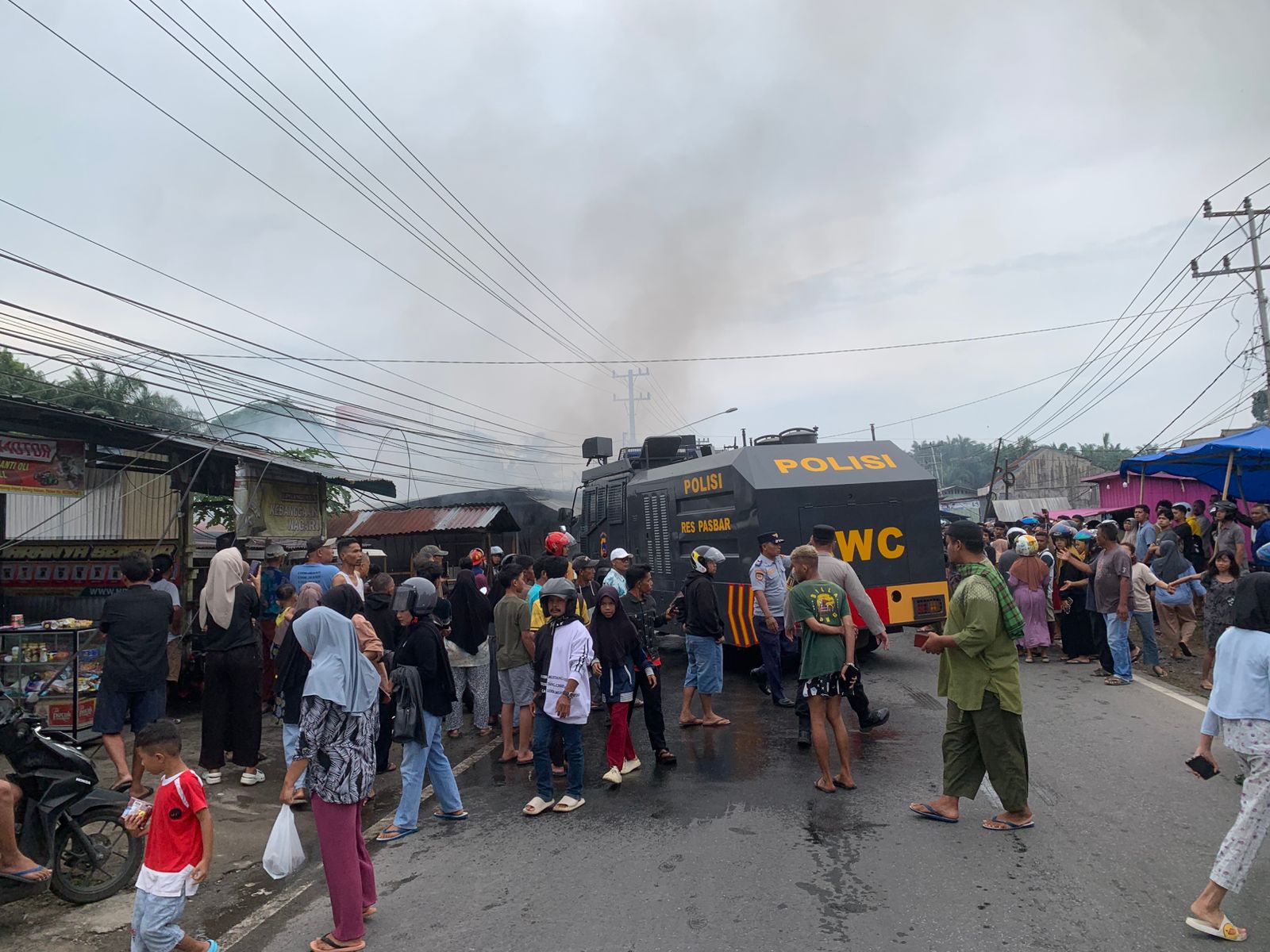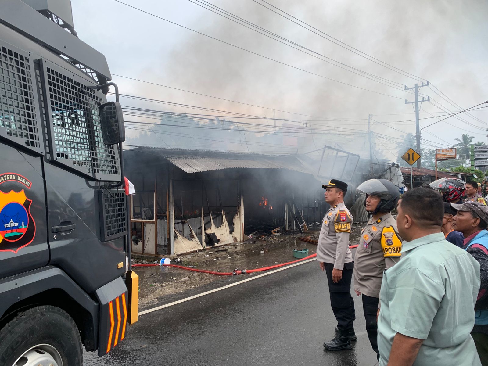 Dikatakan, mendapat informasi adanya peristiwa kebakaran, mobil Armoured Water Cannon (AWC) Polres Pasaman Barat serta dibantu dua unit mobil pemadam kebakaran dari Posko Simpang Empat dan Kinali, dikerahkan untuk membantu pemadaman.