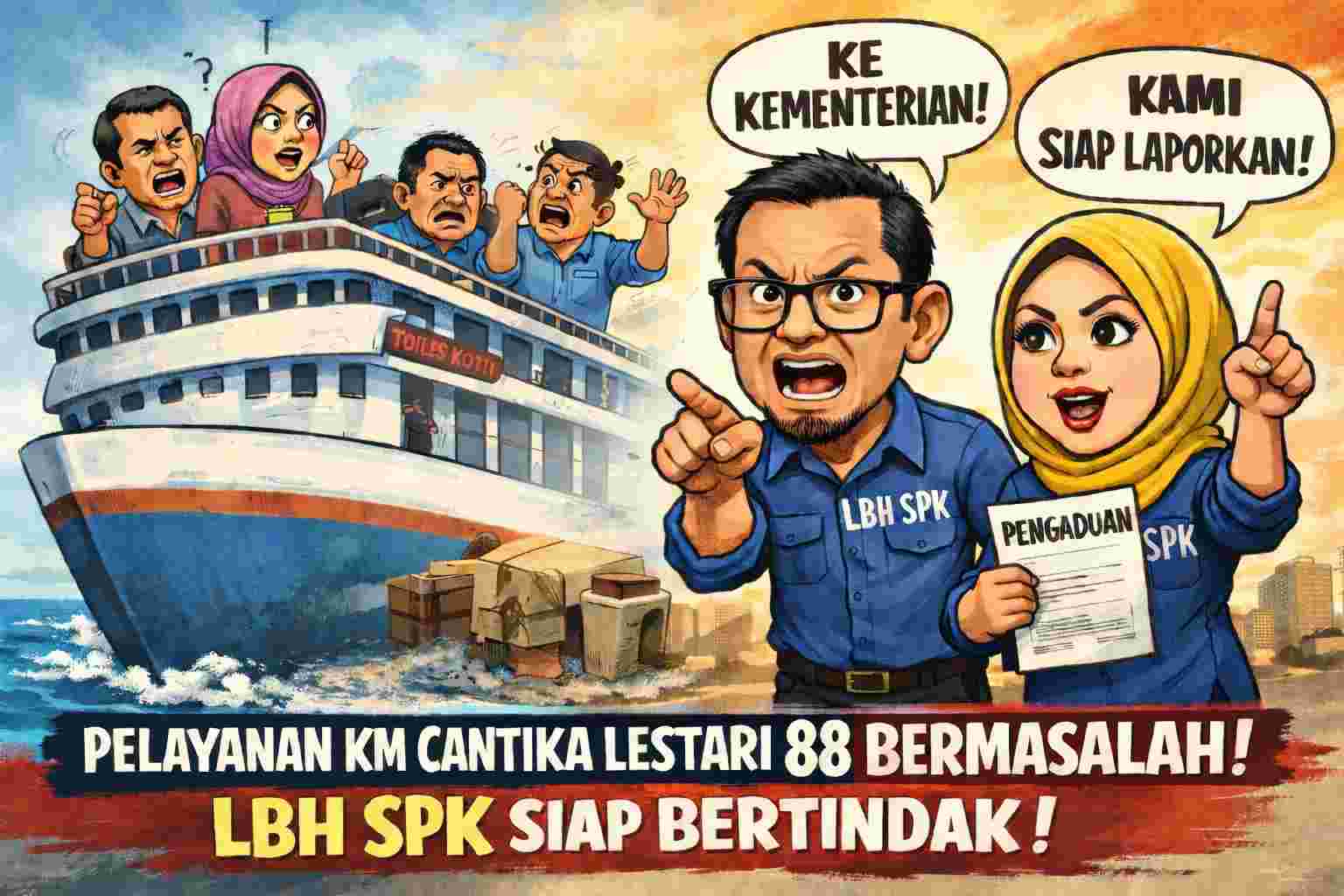 Lebih lanjut AK menjelaskan bahwa dirinya sudah melaporkan hal ini ke LBH (Lembaga Bantuan Hukum) SPK (Suara Panrita Keadilan) terkait pelayanan KM Cantika Lestari 88.
