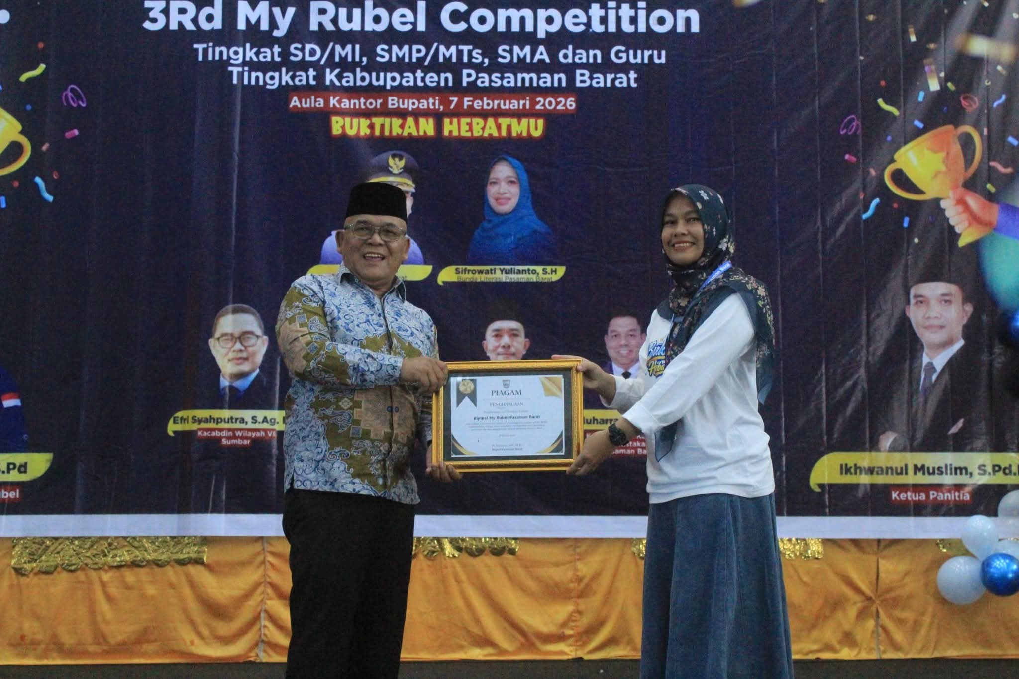 Pemerintah Kabupaten Pasaman Barat terus mendorong lahirnya generasi unggul melalui berbagai kegiatan pengembangan potensi pelajar. Salah satunya melalui Third My Rubel Competition yang diikuti ratusan murid SD/MI, SMP/MTs, SMA/MA/SMK serta guru se-Kabupaten Pasaman Barat.