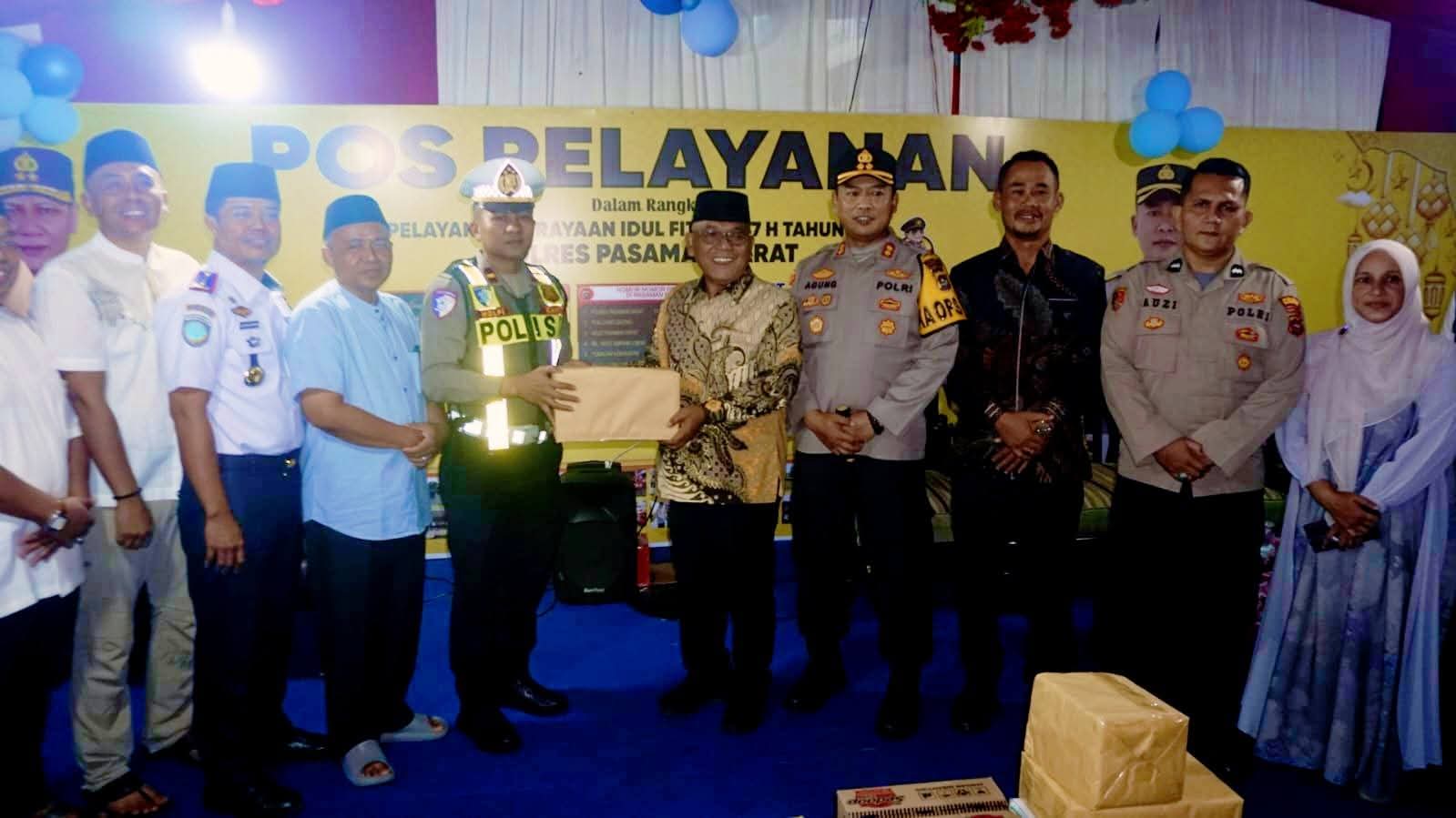 Bupati Pasaman Barat, Yulianto, meninjau Pos Pelayanan Perayaan Idul fitri. yang berlokasi di depan Bank Nagari Simpang Empat, Kecamatan Pasaman. Dalam kegiatan tersebut, Bupati juga menyerahkan logistik kepada petugas yang berjaga.