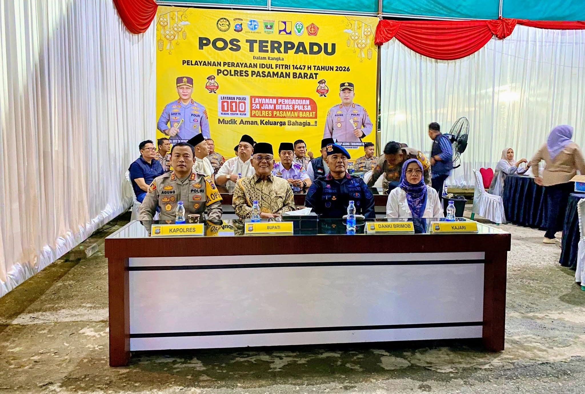 Bupati Pasaman Barat, Yulianto, meninjau Pos Pelayanan Perayaan Idul fitri. yang berlokasi di depan Bank Nagari Simpang Empat, Kecamatan Pasaman. Dalam kegiatan tersebut, Bupati juga menyerahkan logistik kepada petugas yang berjaga.