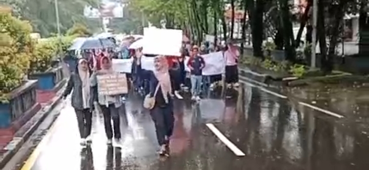 “Perjuangan kami bukan untuk membandingkan dengan siapa pun. Kami bekerja nyata setiap hari mendidik anak-anak. Hari ini kita kehujanan, tapi ini saksi perjuangan kami,” ujarnya.